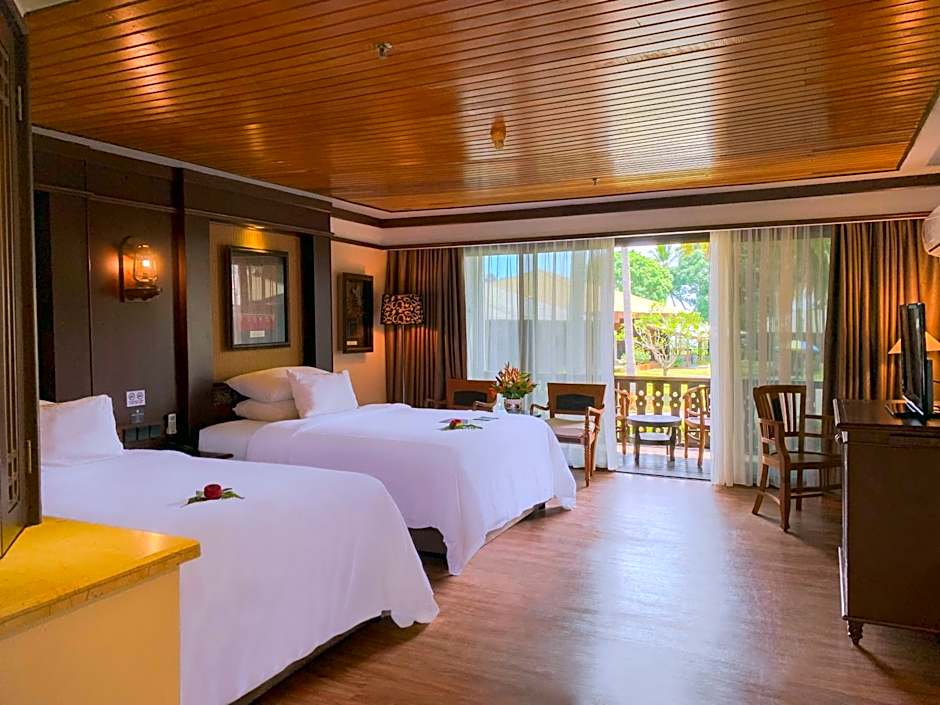 Located in the Beach Wing, this standalone chalet offers sea or garden views. It features a flat-screen satellite TV and a private bathroom with bathtub. Please note that 1 unit of Chalet has 3 bedrooms which are rented individually room by room .The rate is for 1 INDIVIDUAL bedroom with individual amenities and the UNIT will be shared with guests staying in the other bedrooms. This room offers breakfast for 2 people.